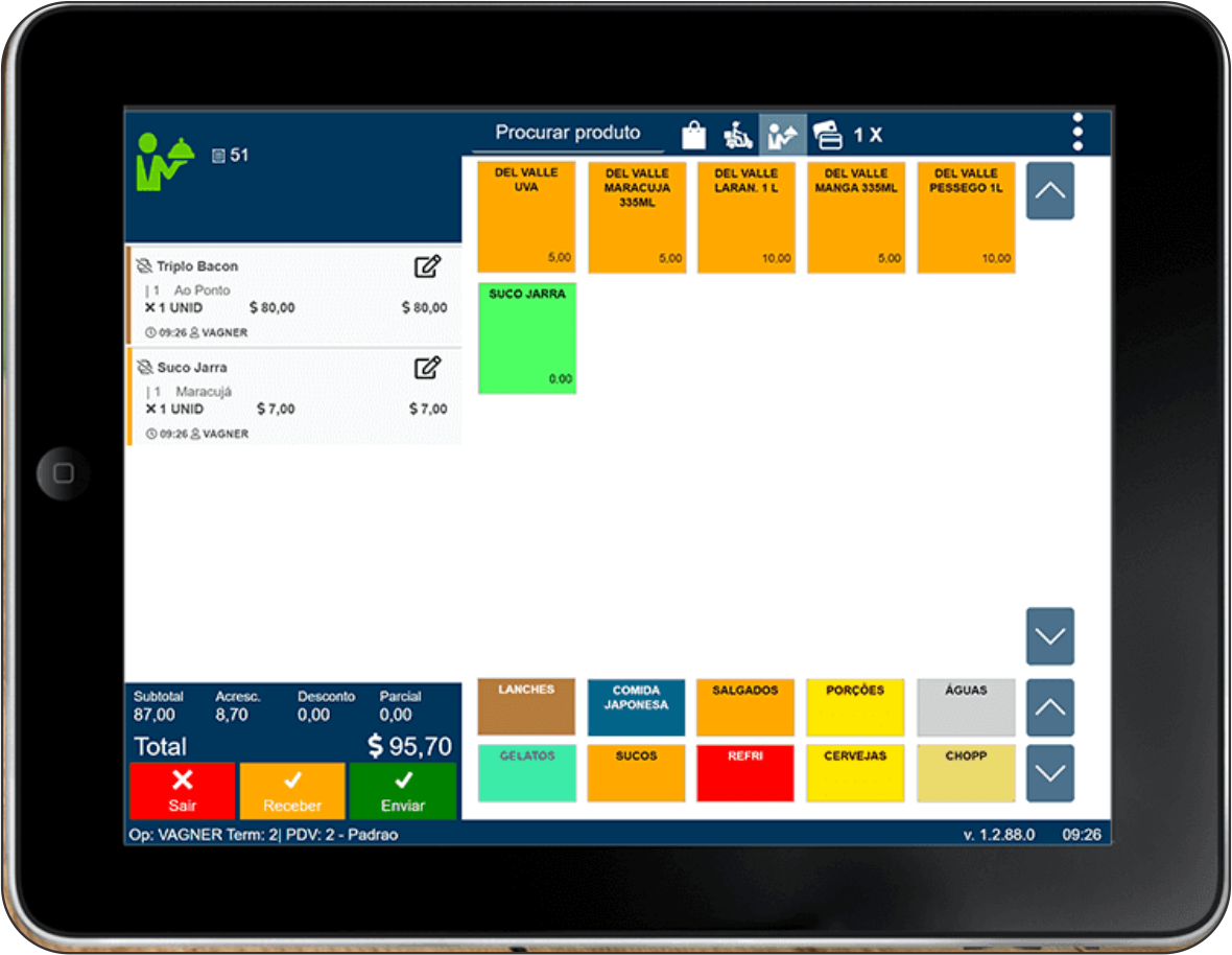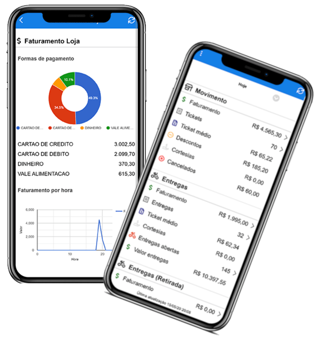 Controle simultâneo de mesas, comandas, garçons, delivery e balcão