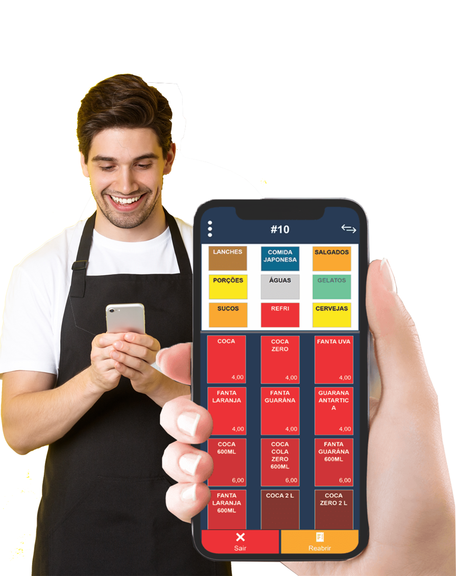 Controle simultâneo de mesas, comandas, garçons, delivery e balcão