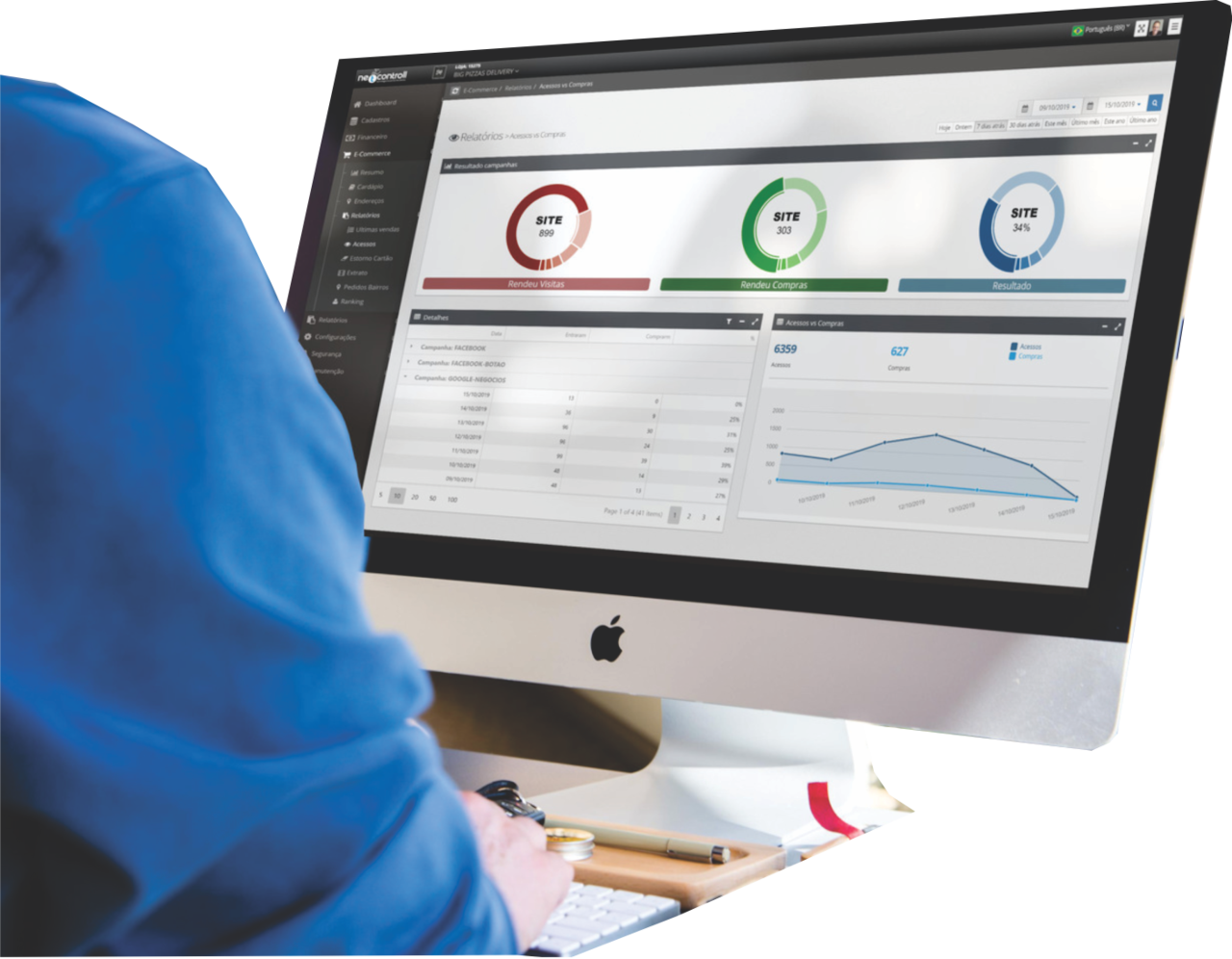 Acompanhe a movimentação de sua loja no smatphone ou no computador por relatórios e gráficos de fácil visualização